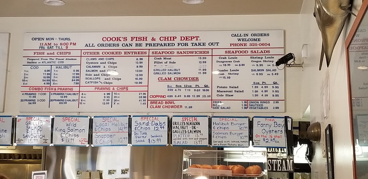 Cook's Seafood Menu